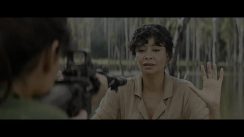 The filming turns into chaos even before the main threat appears: the movie rights turn out to be fictitious, and a real giant anaconda is announced in the jungle. The Predator destroys the Sony set, which was shooting its own remake in parallel, and takes on the company of friends.